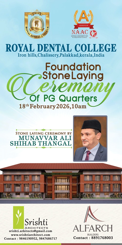 Categories NEWS & EVENTS TOP HIGHLIGHTS Foundation Stone Laying Ceremony Royal Dental College Chalissery Post author By site_admin Post date February 19, 2026 No Comments on Foundation Stone Laying Ceremony Royal Dental College Chalissery Royal Dental College